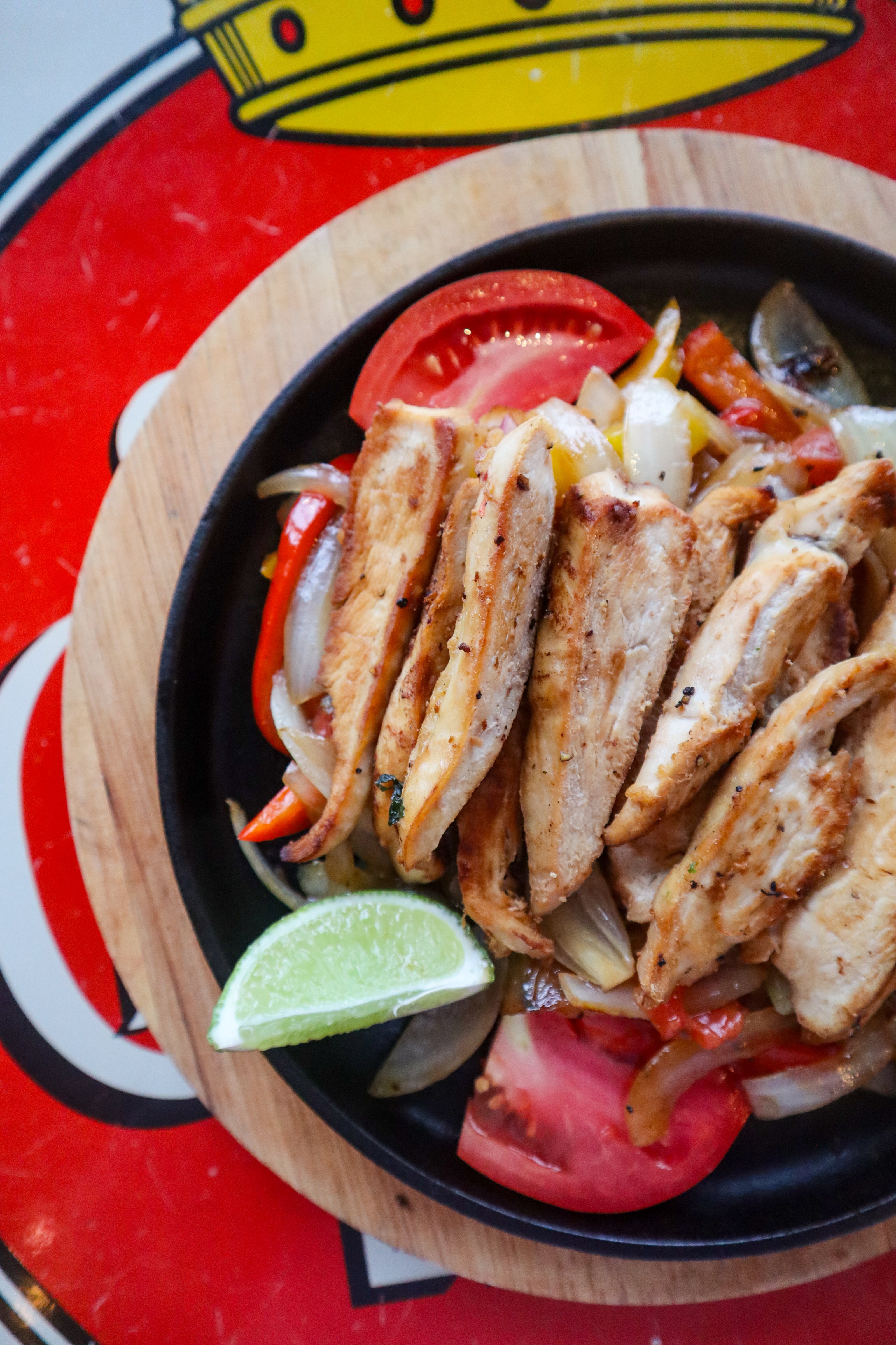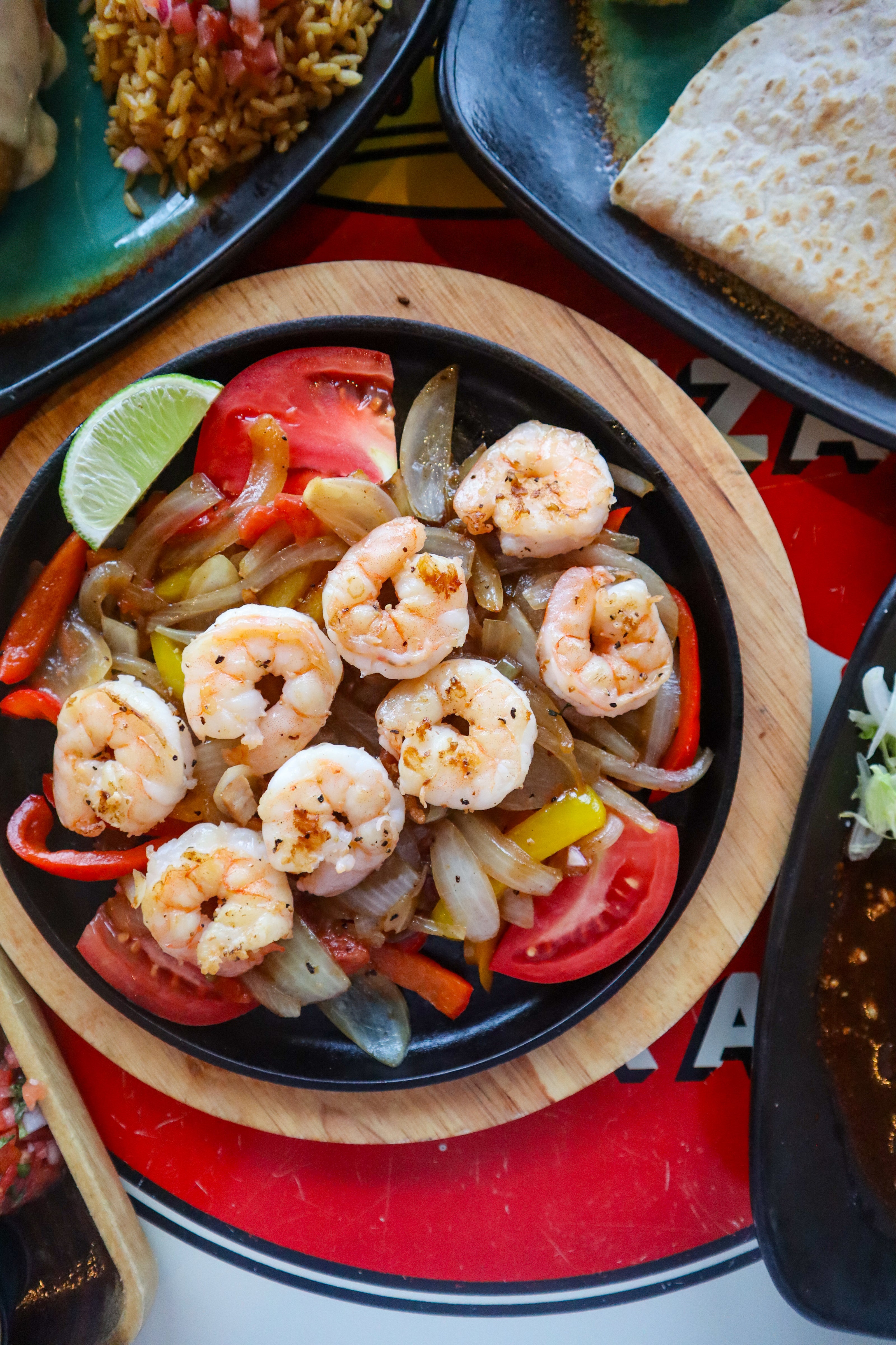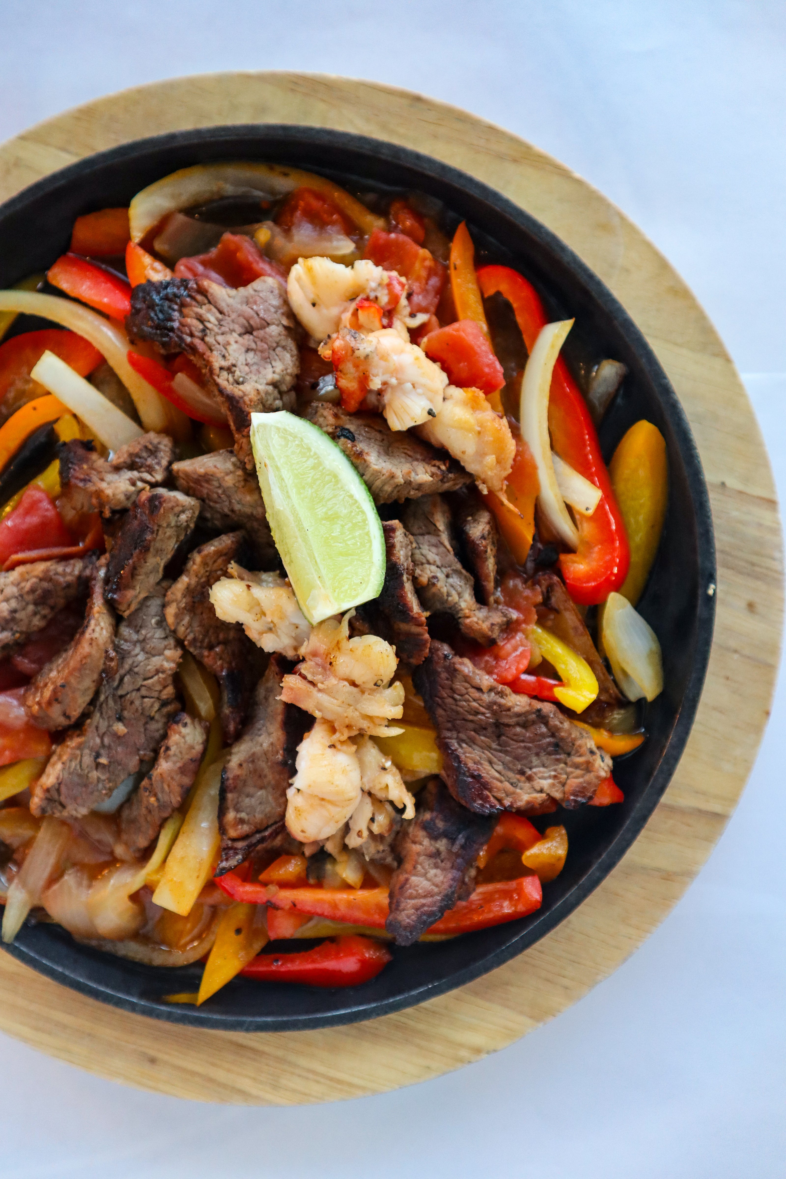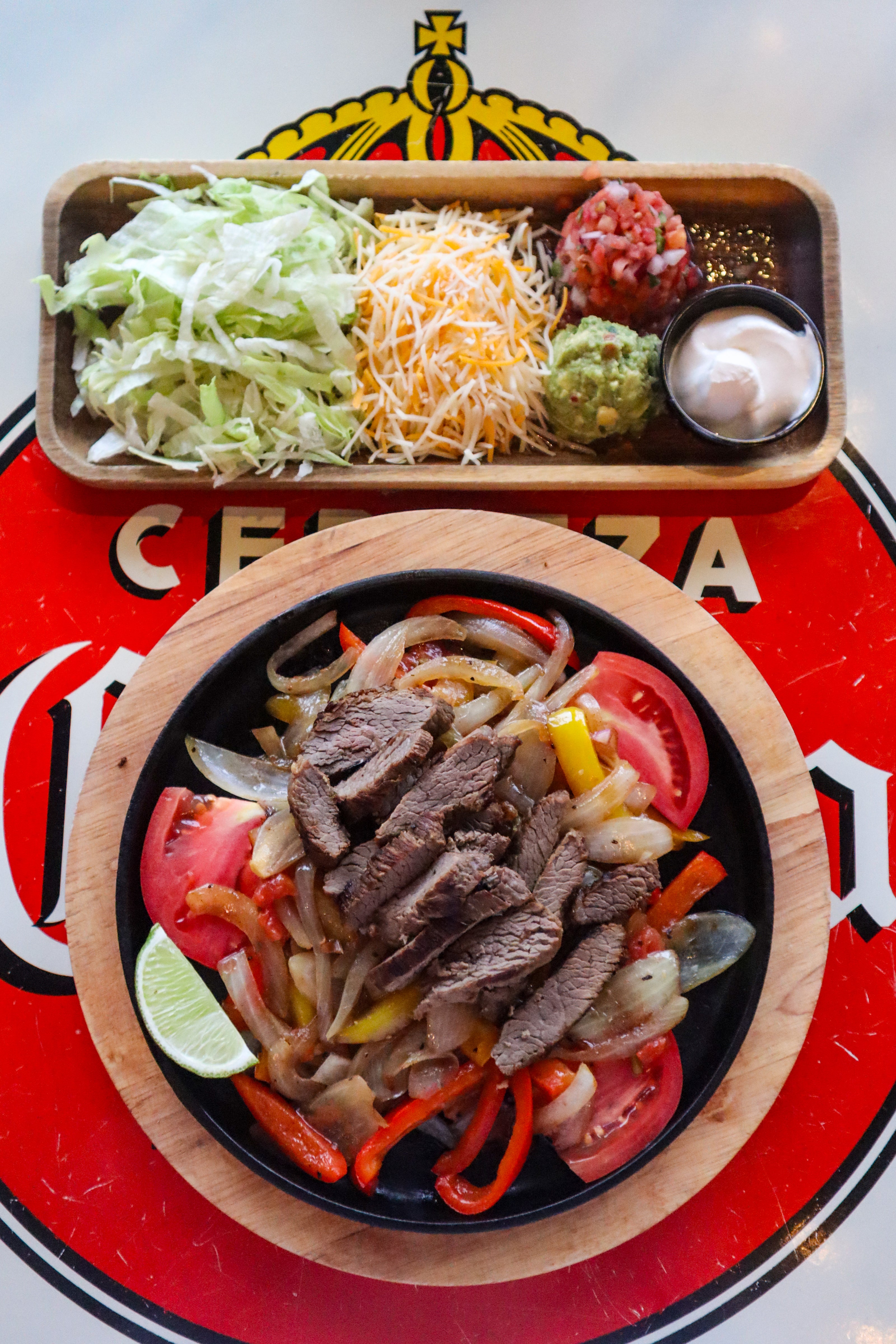 Sizzling skillets piled high with marinated meats and veggies, onions snapping and peppers popping. Build your perfect bite with warm tortillas and all the fixings.
