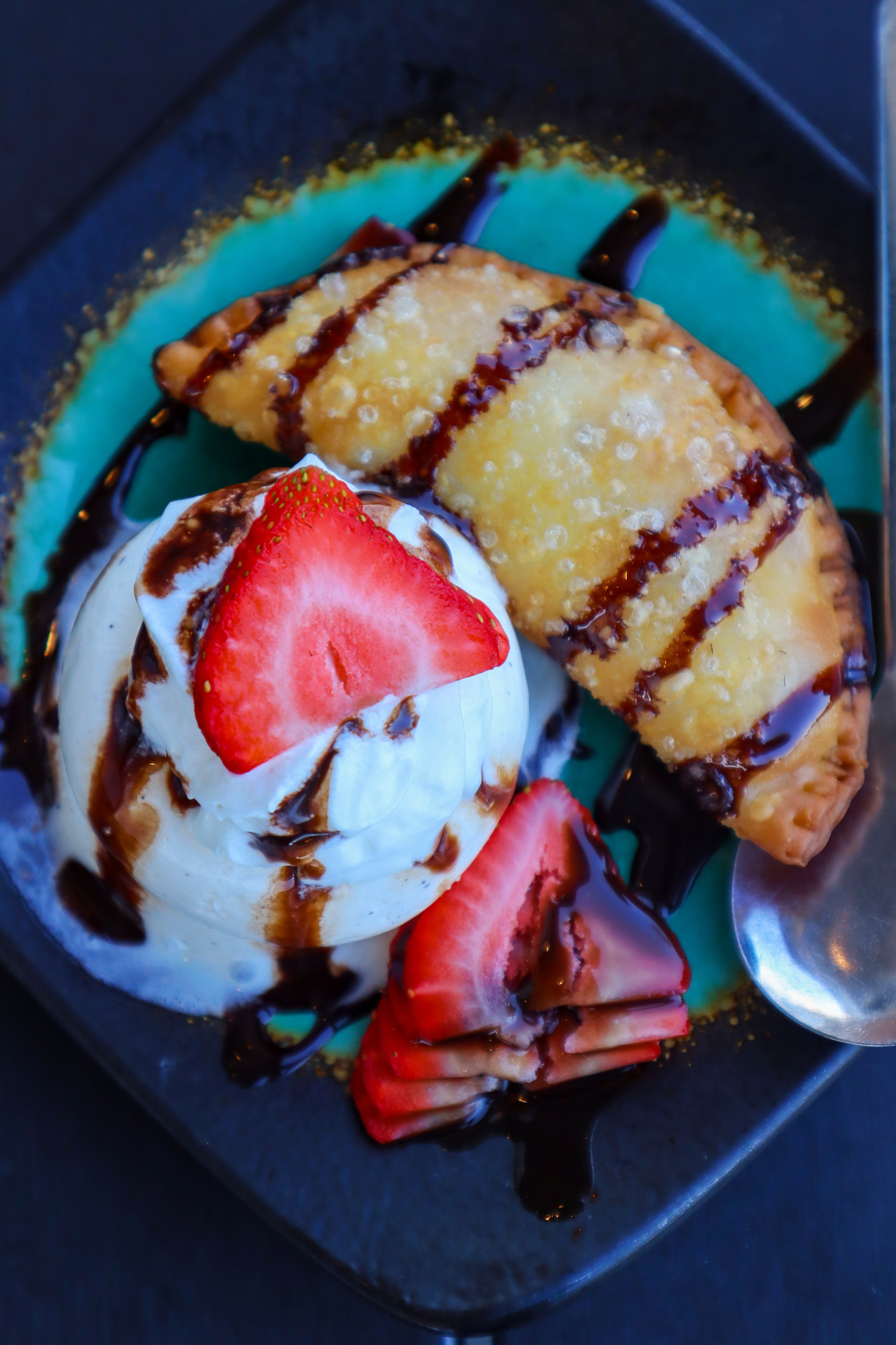 Order NowGolden, sugar-dusted pastry pockets stuffed with strawberry cheesecake filling and served warm with a swirl of whipped cream. Sweet, flaky, and impossible to share.