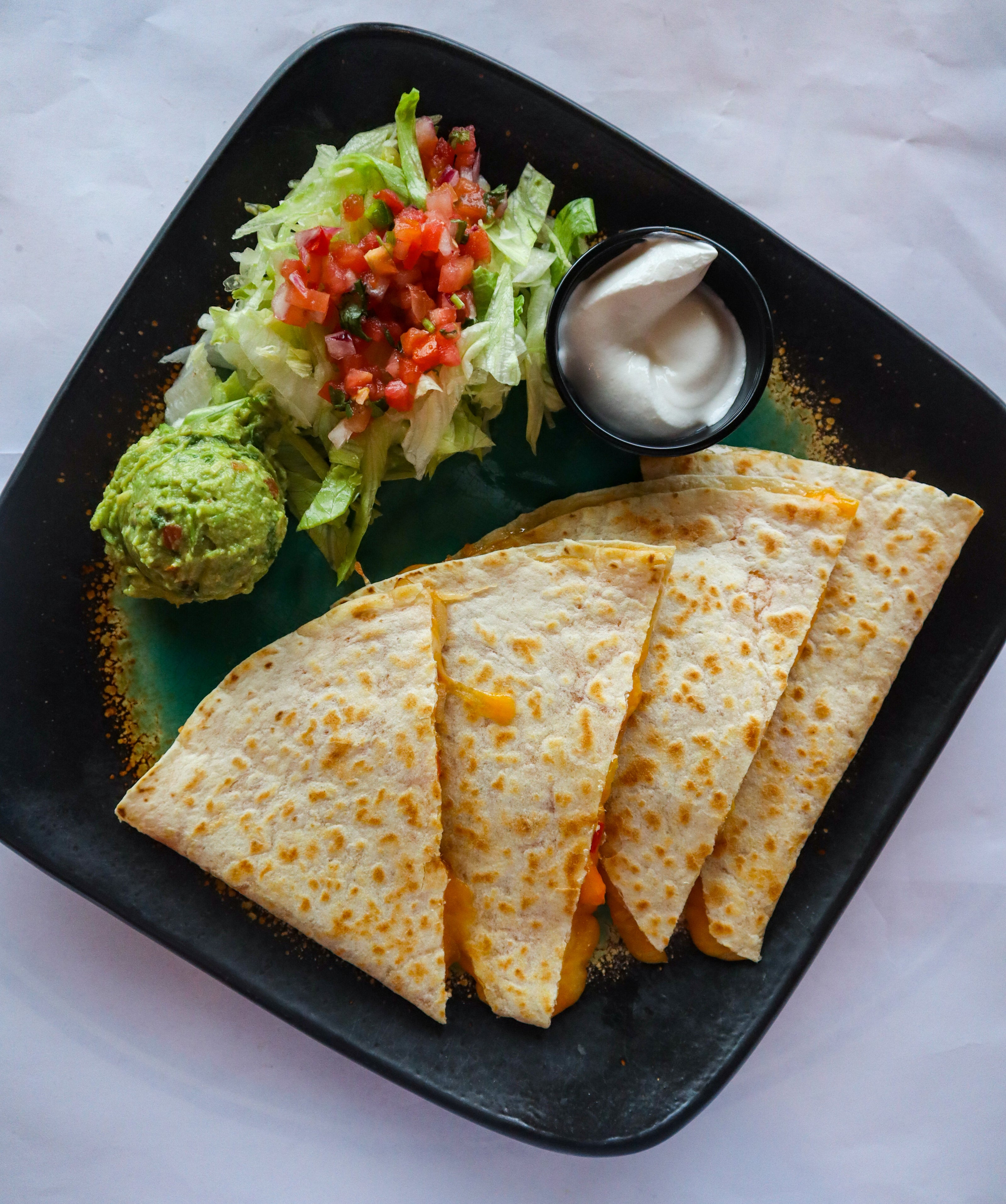 Golden, gooey, and griddle-pressed. Our quesadillas are stuffed with melty cheese and your choice of fillings, then served with cool crema and fresh guacamole.