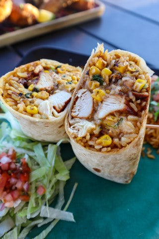 Order NowGrilled chicken breast wrapped in a jumbo flour tortilla with corn salsa, queso fresco, and our house street corn sauce.